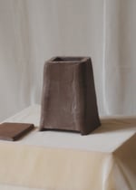 "Legere means “gathering” or “to gather” in Latin. For this collection, I wanted to return to the roots of consumption : gathering. Gathering is one of the first gestures of humankind, gathering to nourish oneself. Gathering through the earth: that’s why, here, the objects take shape through this material. After gathering come questions of preservation: preserving a spice, a flower, an herb, a grain, a liquid, a fruit... I started by creating small boxes, like the ones my grandmother used to keep her spices and flours. Then I enlarged the form, imagining salad bowls that might hold our fruits or vegetables. Then came a basket to collect them, and finally, plates to serve them."