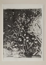 Monotype (estampe, tirage unique) dim. 15 x 20 cm, cadre carton bois 1 mm, colle, rubans adhésifs, fil coton ciré, dim. cadre 26 x 30 x 2 cm.