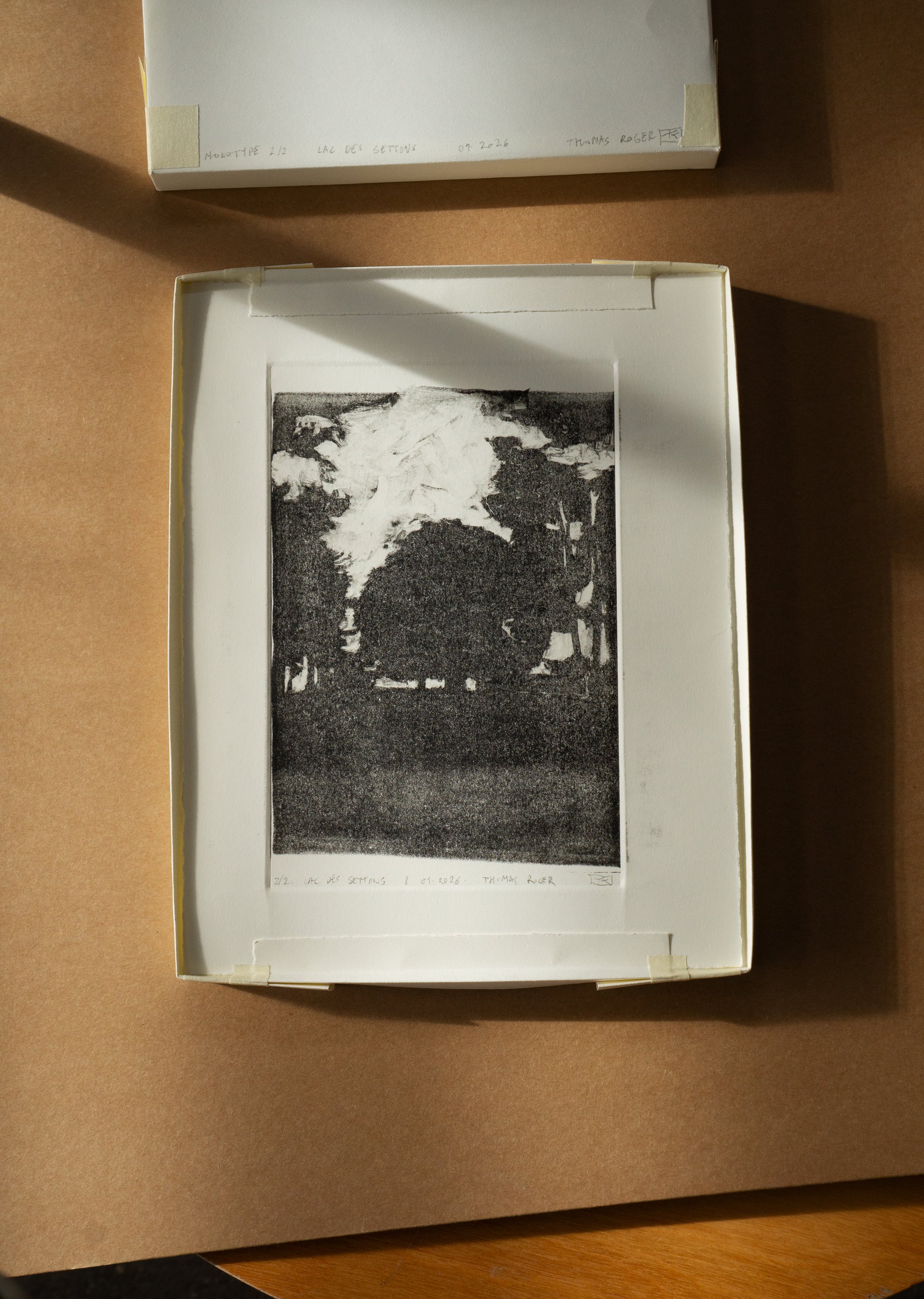 Gravure monotype signée, un coffret sur mesure est réalisé pour l'envoi, afin de garantir un transport en toute sécurité. Le numéro de suivi du colis est adressé au destinataire dès que l'objet est envoyé (délais de livraison : France 5-7 jours, international 10-15 jours).