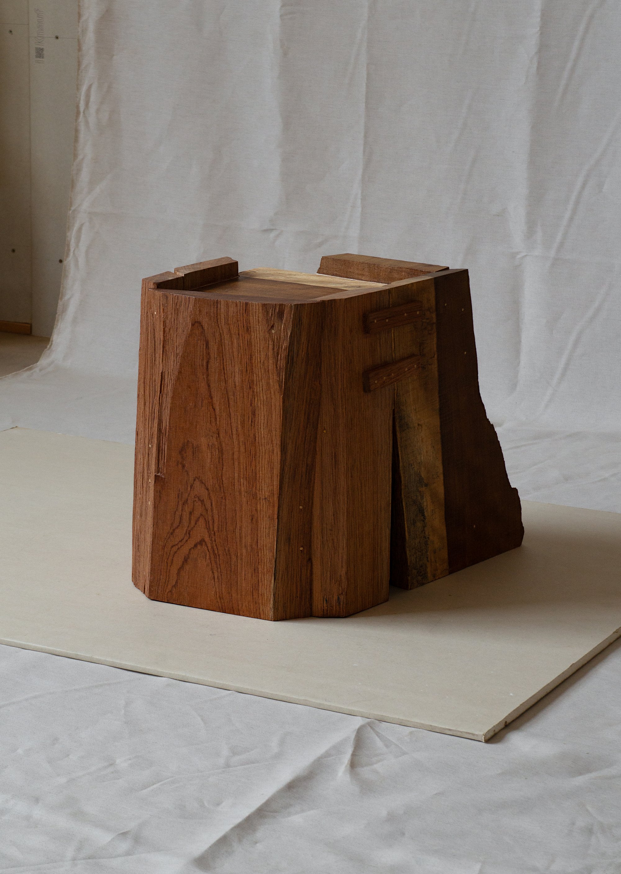 L'objet est protégé par une préparation à base de cire d’abeille. Le bois utilisé est trouvé dans des ressourceries et menuiseries locales, sous forme de chutes, planches de bois aux dimensions et essences variées. L’assemblage et le travail du bois est réalisé à la main, à l’atelier basé à Mulhouse, en Alsace.