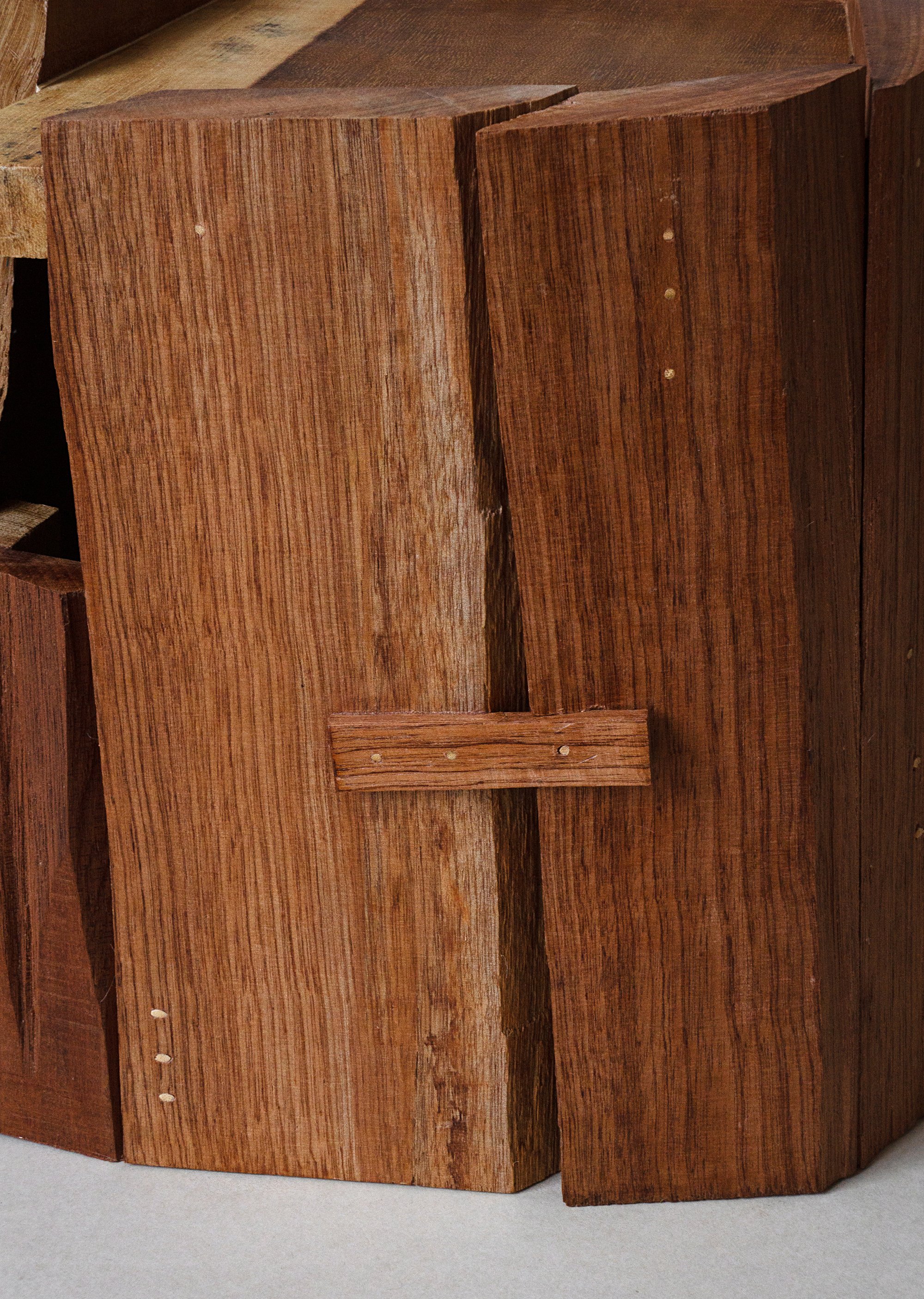 bois merisier, Acajou Santos, Mahogany (exotic wood), chevilles bambou, cire d’abeille.