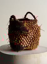 These objects in wooden pearls reminds me of the past, the old wicker baskets I used to see, but it is like a new version of my memories. At first I was trying to make knitted objects, but they were too easily deformed. the pearls are also knitted, but the objects are stronger, the shape doesn’t move if you manipulate the basket or the bowl. The assembly technique is new (I think) and quite meticulous, but it is important for me to work on basic and useful objects, unique pieces you would like to collect, to use and also to feature at home. I hope, later, these baskets will becoming old baskets, and perhaps, some kids will be inspired of these objects.