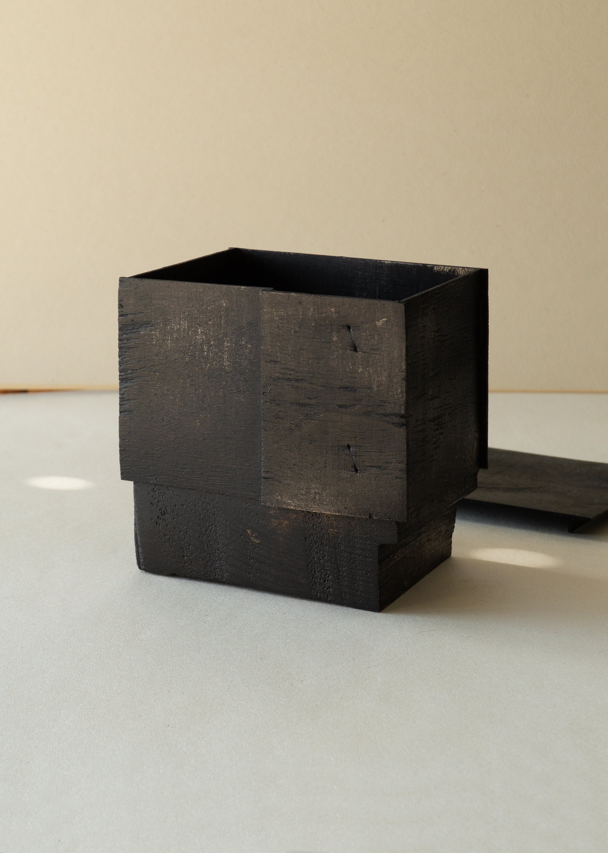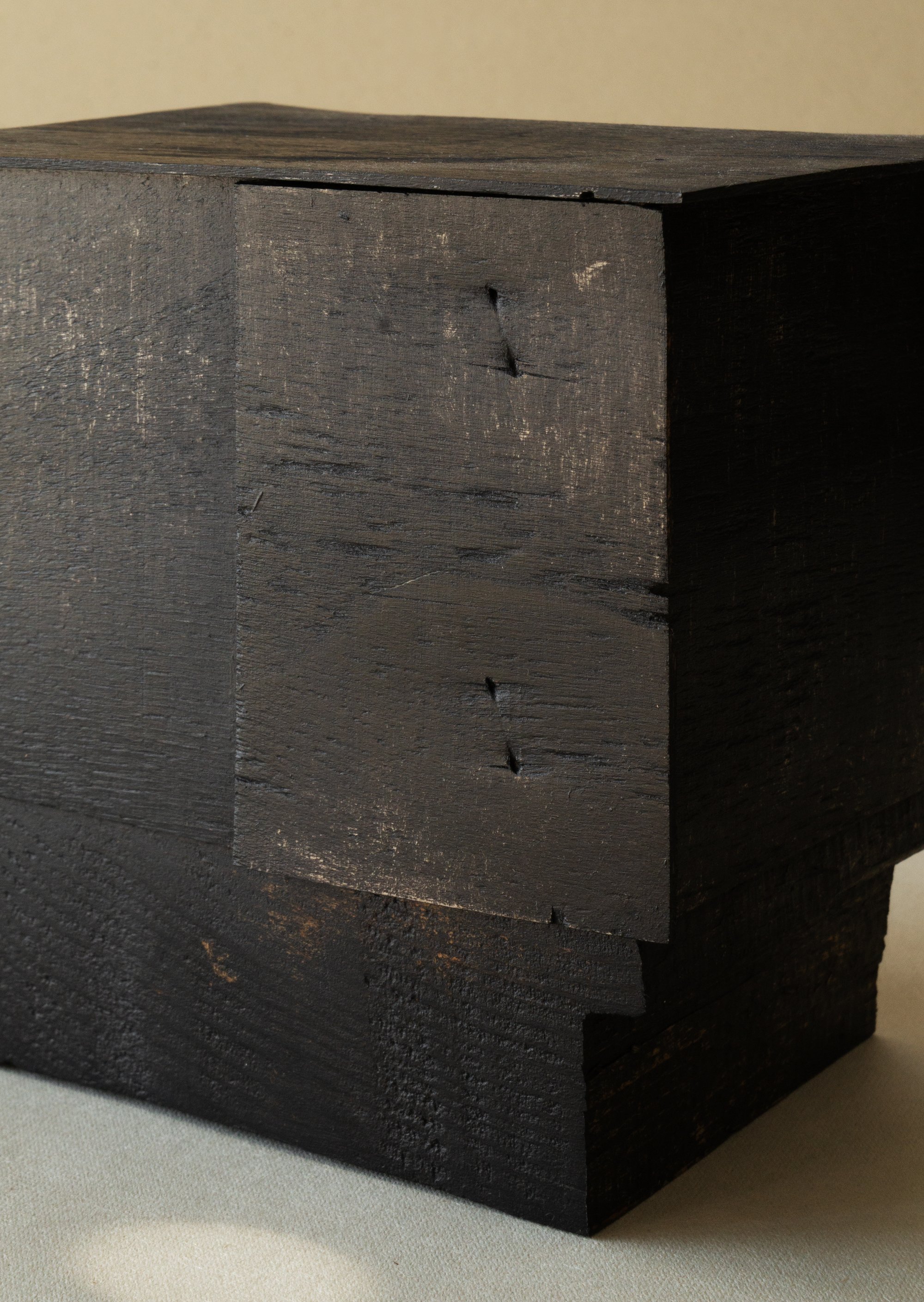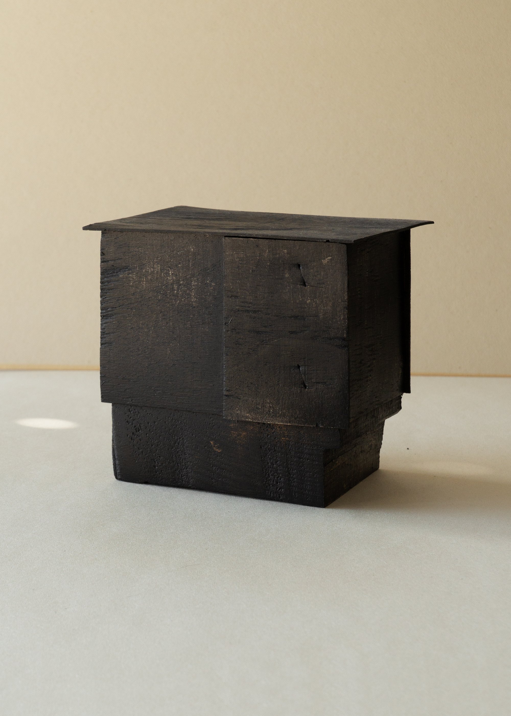 bois sapin, peuplier, encre noire, cire d'abeille.