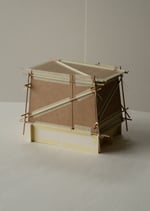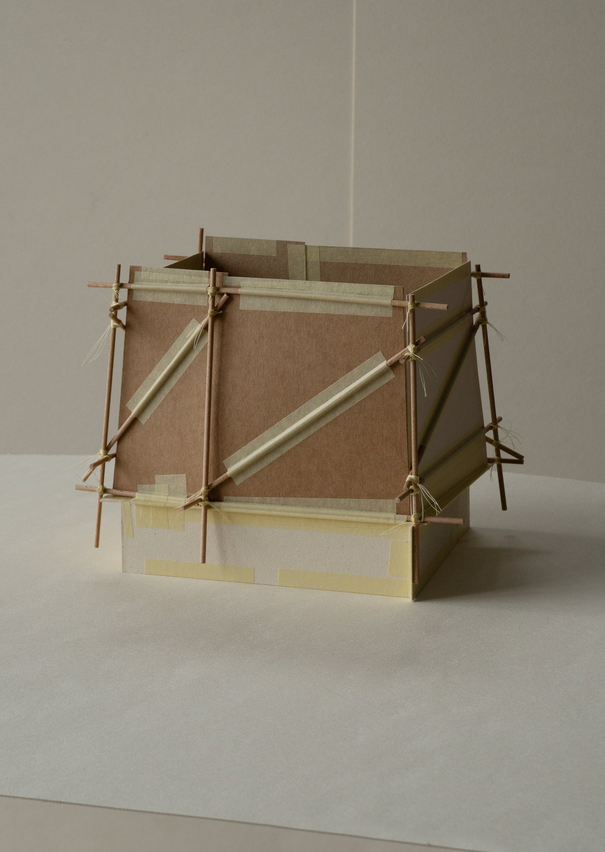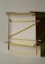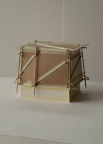 carton bois 1 mm, carton 0,5 mm, papier Rosapina 285 g/m, structure bois hêtre, fil coton, colle, rubans adhésifs.